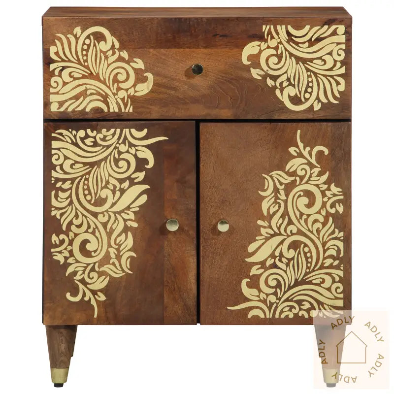 Nattbord i solid mangotre med blomstermønster fra vidaXL
