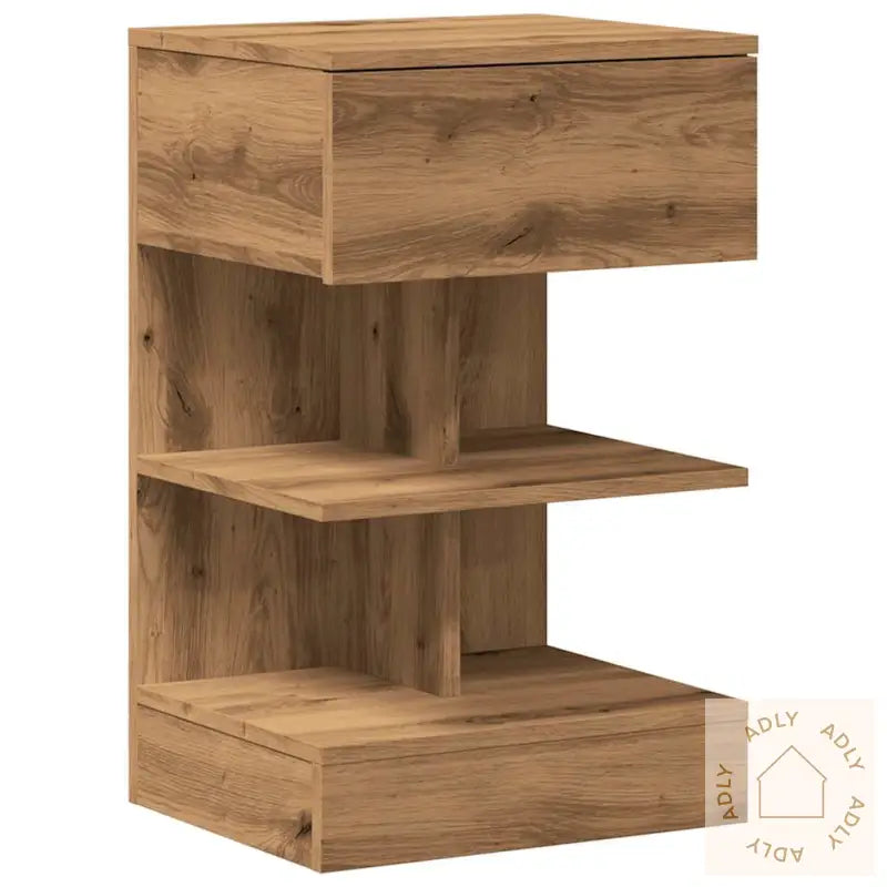 Nattbord i artisan eik med moderne design og justerbare føtter