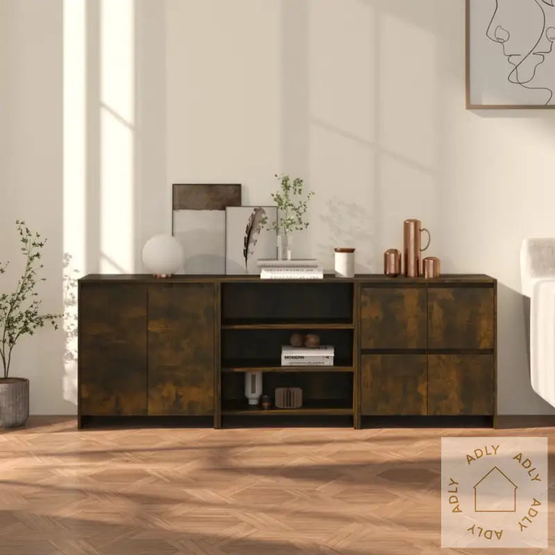 Skjenker 3 Stk Røkt Eik Konstruert TreSkjenker 3 Stk Røkt Eik Konstruert Tre