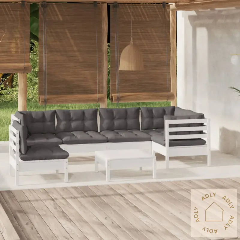 Hagesofagruppe Med Puter 8 Deler Hvit Heltre FuruHagesofagruppe Med Puter 8 Deler Hvit Heltre Furu