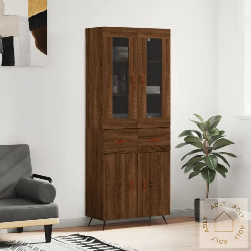 Highboard Brun Eik 69,5X34X180 Cm Konstruert TreHighboard Brun Eik 69,5X34X180 Cm Konstruert Tre