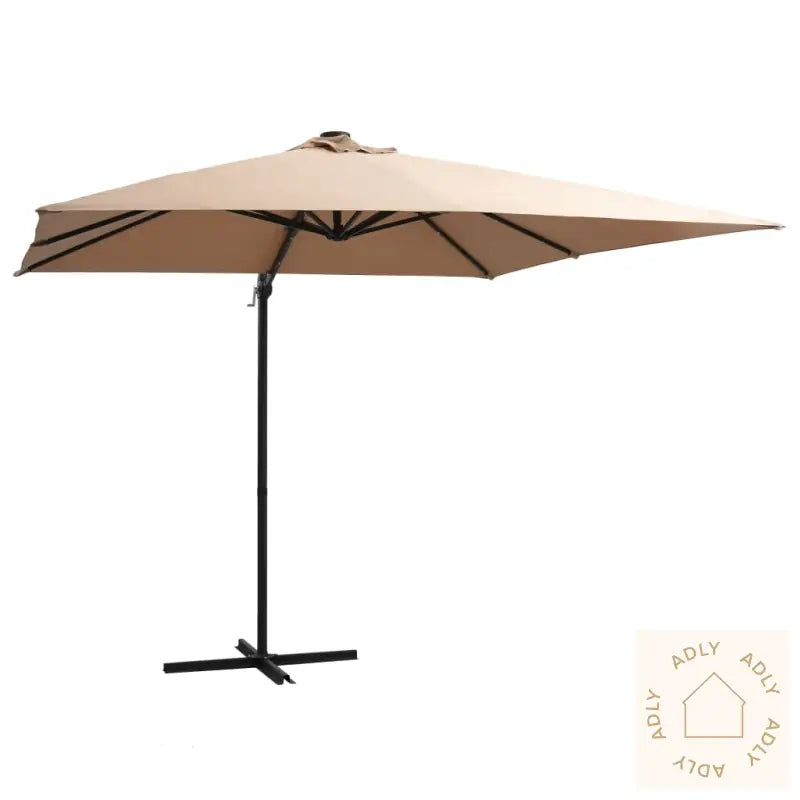 Hengeparasoll med LED-lys i pulverlakkert stål til hagemøbler