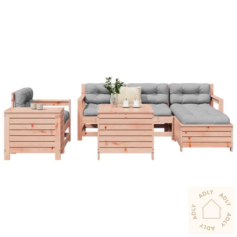 Hagemøbelsett i heltre douglasgran med modulært design til uteplassen
