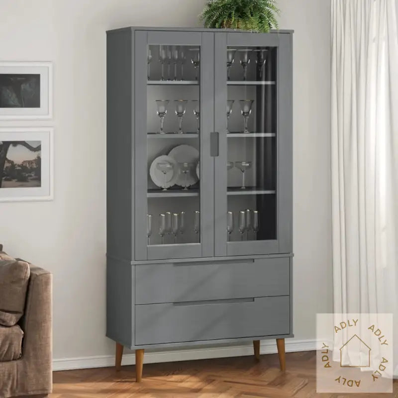 Vitrine Vigo Grå 85X35X170 Cm Heltre FuruVitrine Vigo Grå 85X35X170 Cm Heltre Furu
