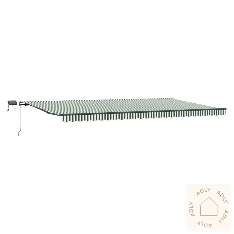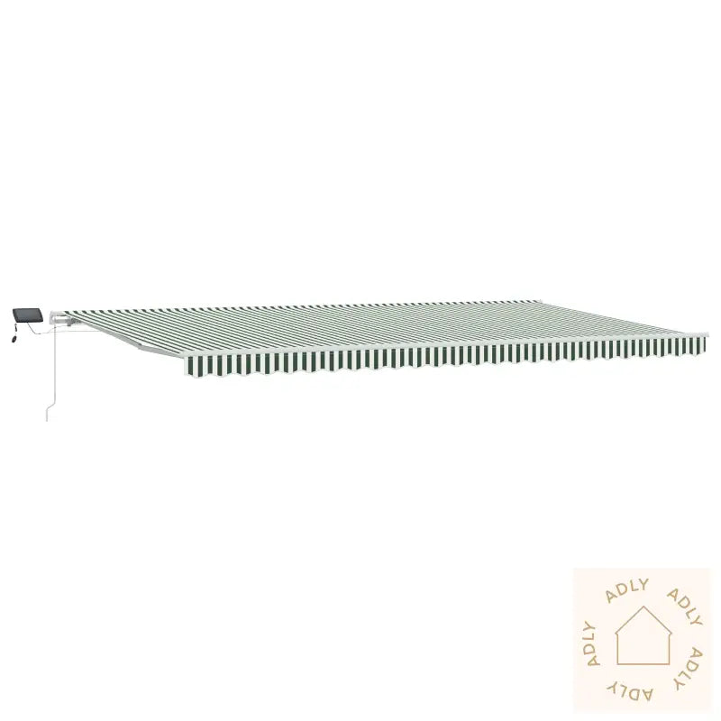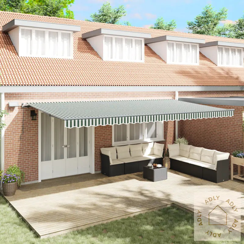 Automatisk uttrekkbar markise grønn og hvit til terrasse og hage