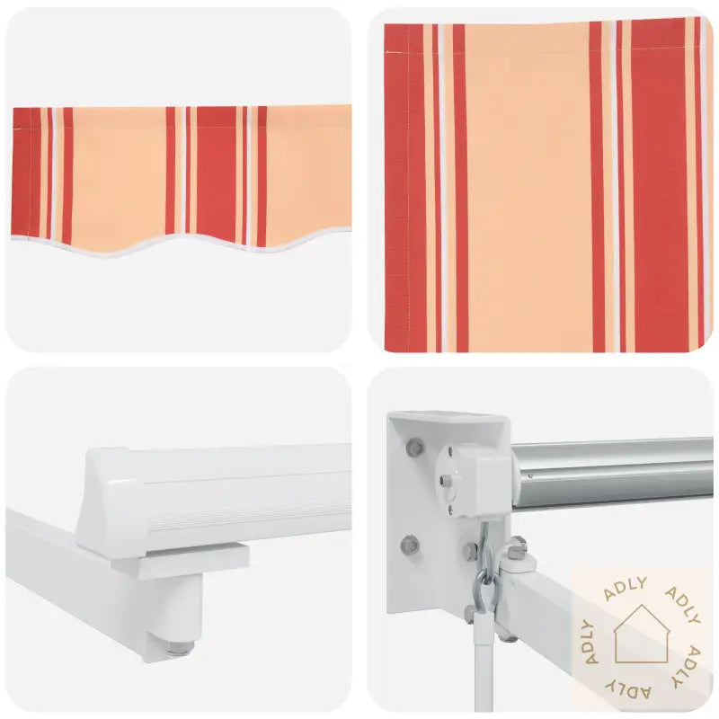 Markise i røde og gule striper til hagemøbler og møbler til hjemmet