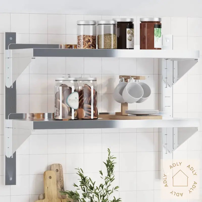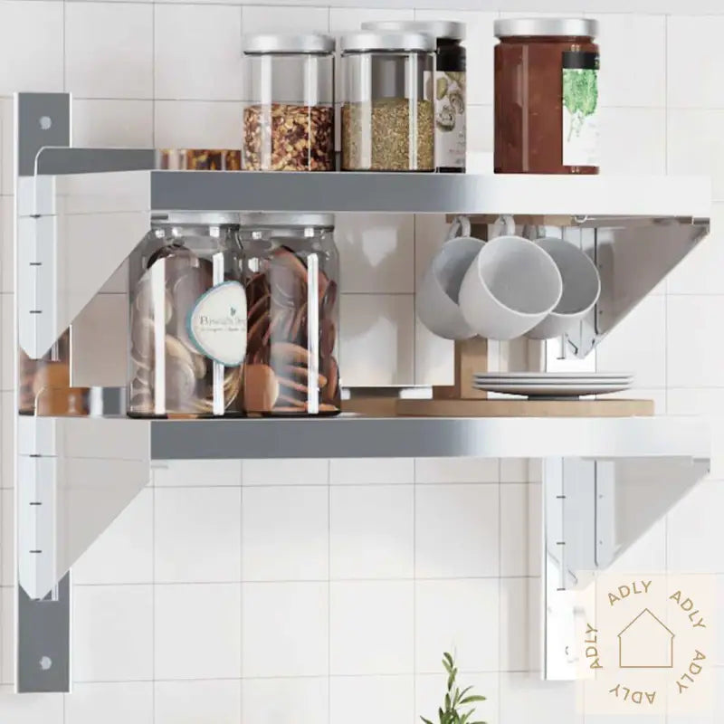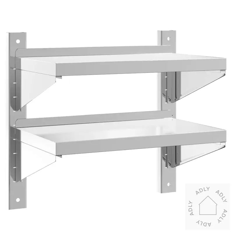 Vegghylle 2 Etasjer 75X23,5X60 Cm Sølv Rustfritt StålVegghylle 2 Etasjer 75X23,5X60 Cm Sølv Rustfritt Stål