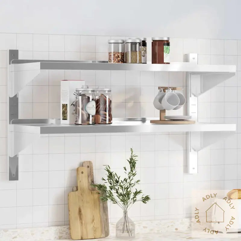 Vegghylle 2 Etasjer 50X23,5X48 Cm Sølv Rustfritt StålVegghylle 2 Etasjer 50X23,5X48 Cm Sølv Rustfritt Stål