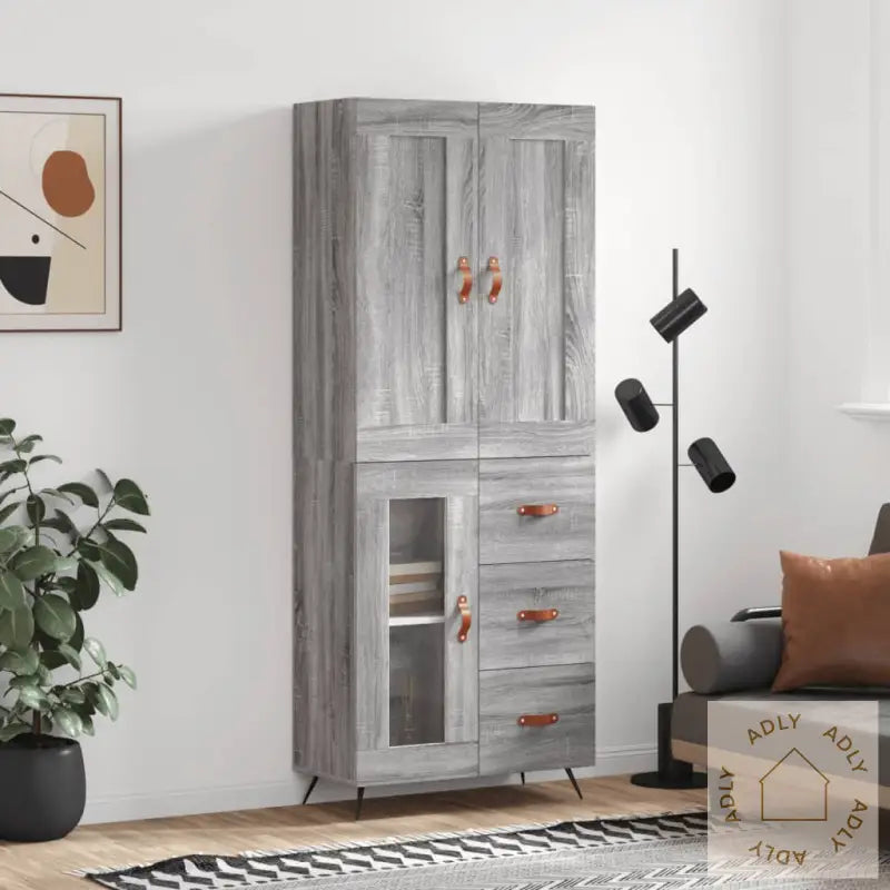 Highboard Grå Sonoma 69,5X34X180 Cm Konstruert TreHighboard Grå Sonoma 69,5X34X180 Cm Konstruert Tre