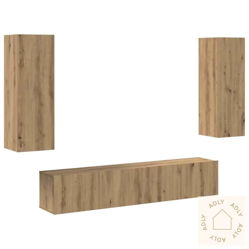 TV-bord i artisan eik med hyller og skap til møbler til hjemmet