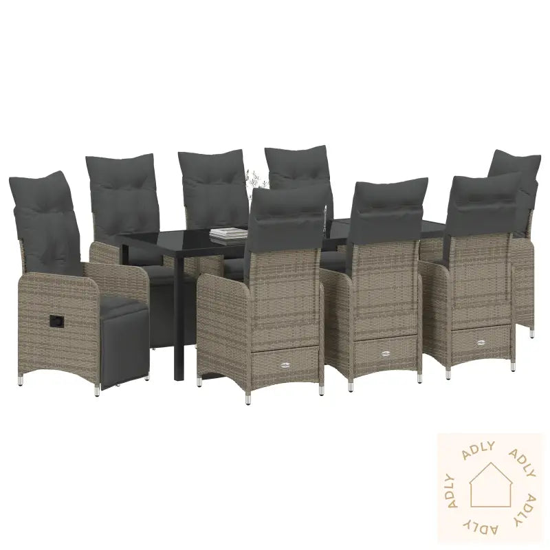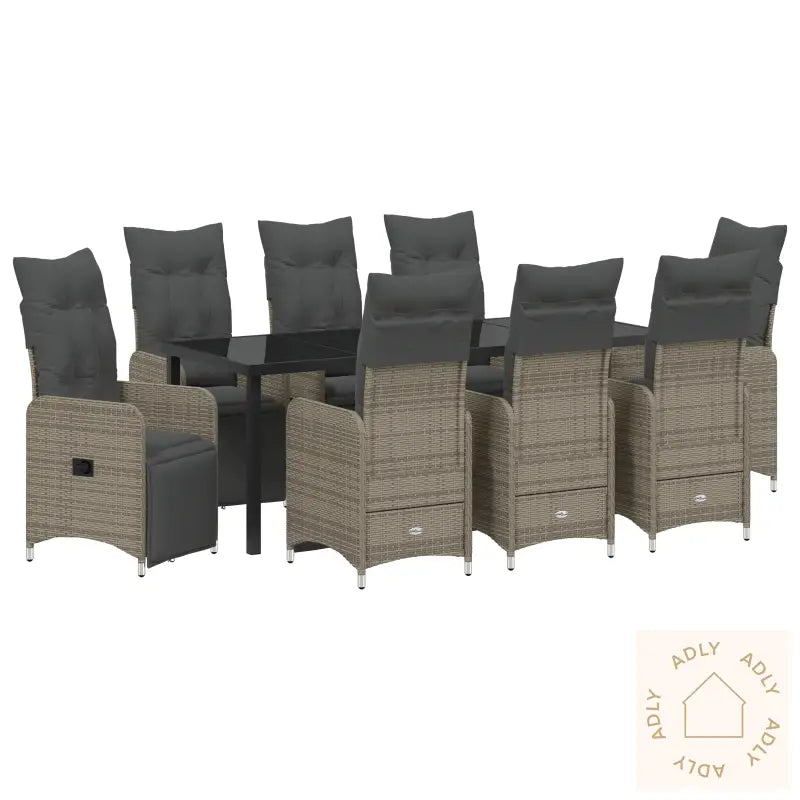 Hagestoler i beige poly rotting med myke kremhvite puter