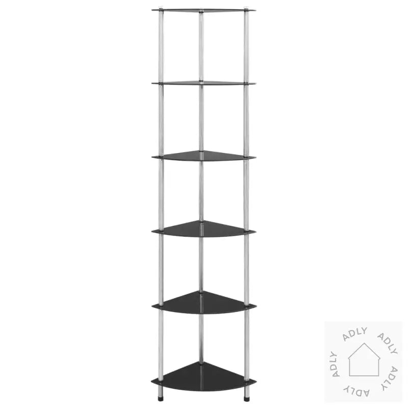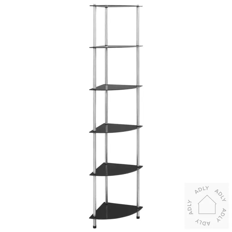 Glasshylle med 6 etasjer i herdet glass og rustfritt stål