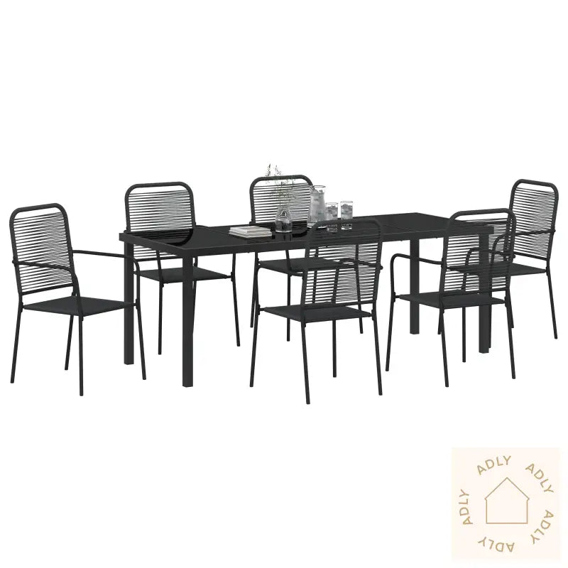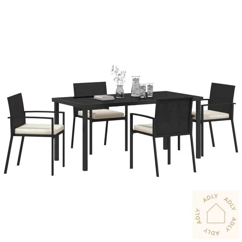 Hagemøbler i svart polyrotting og pulverlakkert stål for utendørs bruk