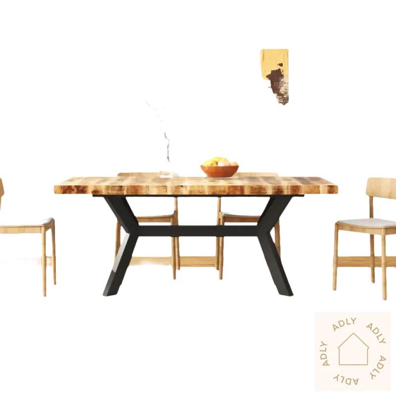 Spisebord i industriell stil med heltre akasie og pulverlakkert stål