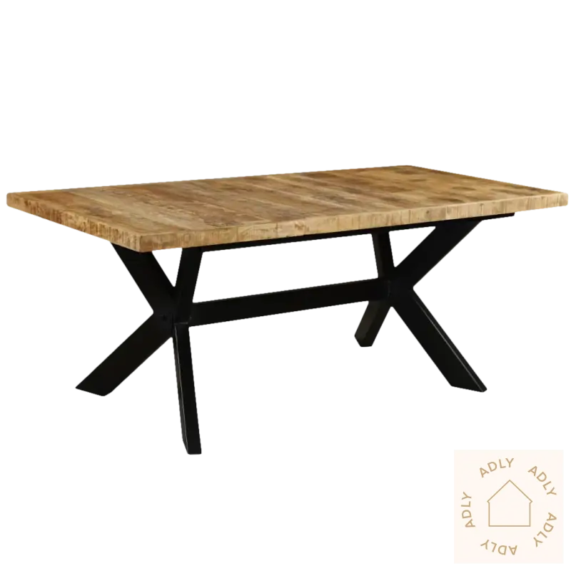 Spisebord i grovt mangotre med solide ben i pulverlakkert stål