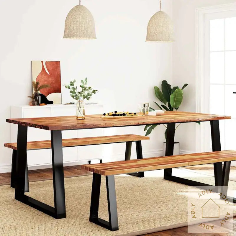 Spisebord i heltre akasie med unike kanter og pulverlakkert stål