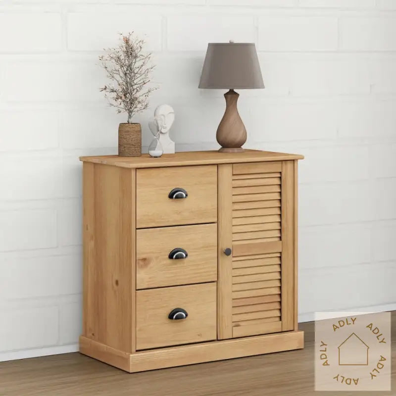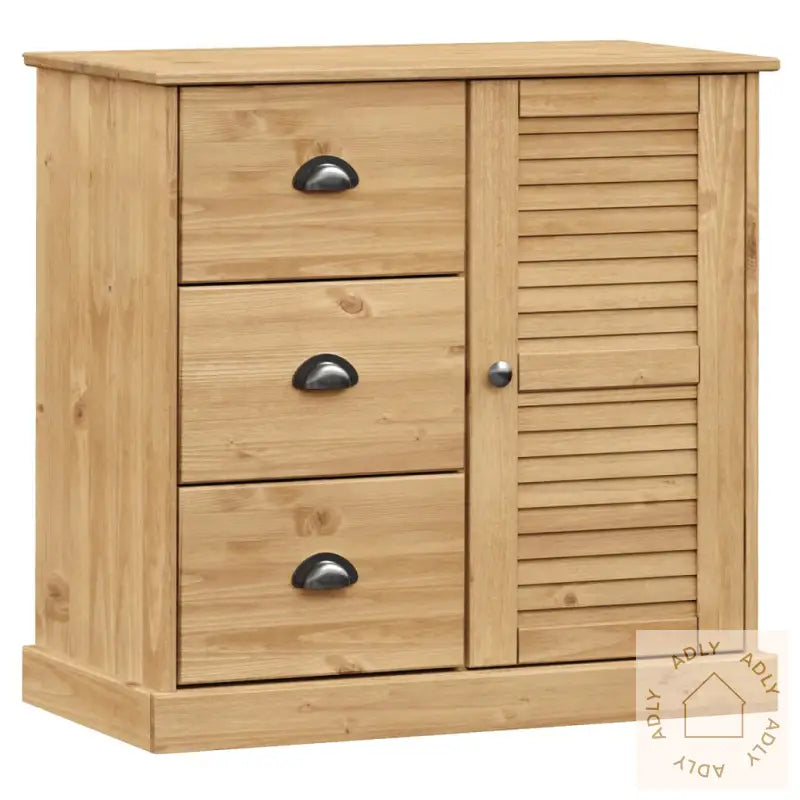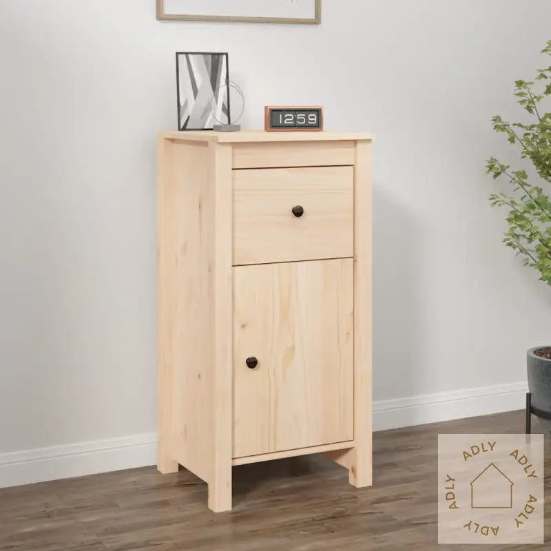 Skjenk i heltre furu med solid topp og praktiske mål skuff
