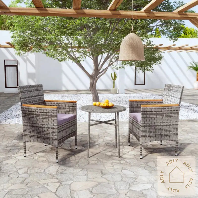 Utendørs Spisestue Med Puter 3 Deler Polyrotting GråUtendørs Spisestue Med Puter 3 Deler Polyrotting Grå