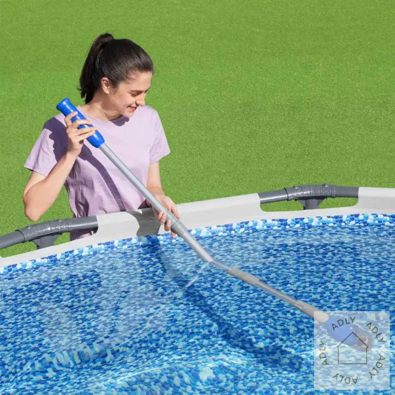 Praktisk bassengrenser for frittstående bassenger med teleskopisk stang