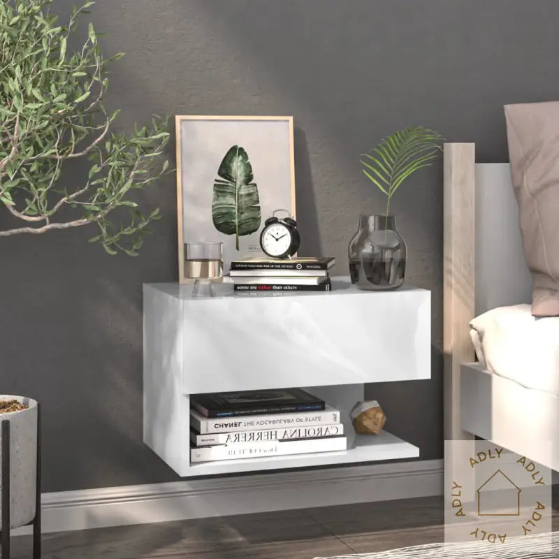 Vegghengt nattbord i høyglans hvit for smart lagring