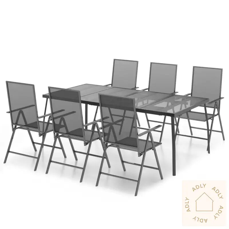 Utendørs spisesgruppe med herdet glass og pulverlakkert stål