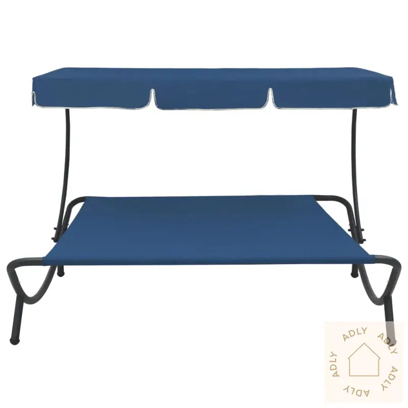 Doble sofasengen perfekt til hagen med stor solskjerm og pulverlakkert stål