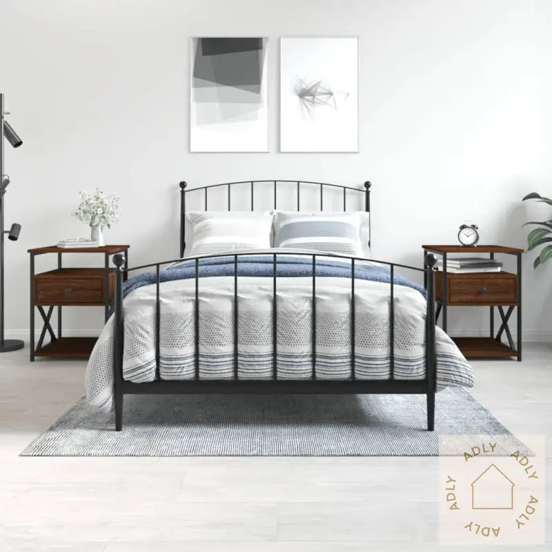Nattbord Med Metallben Brun Eik 40X35X69 CmNattbord Med Metallben Brun Eik 40X35X69 Cm