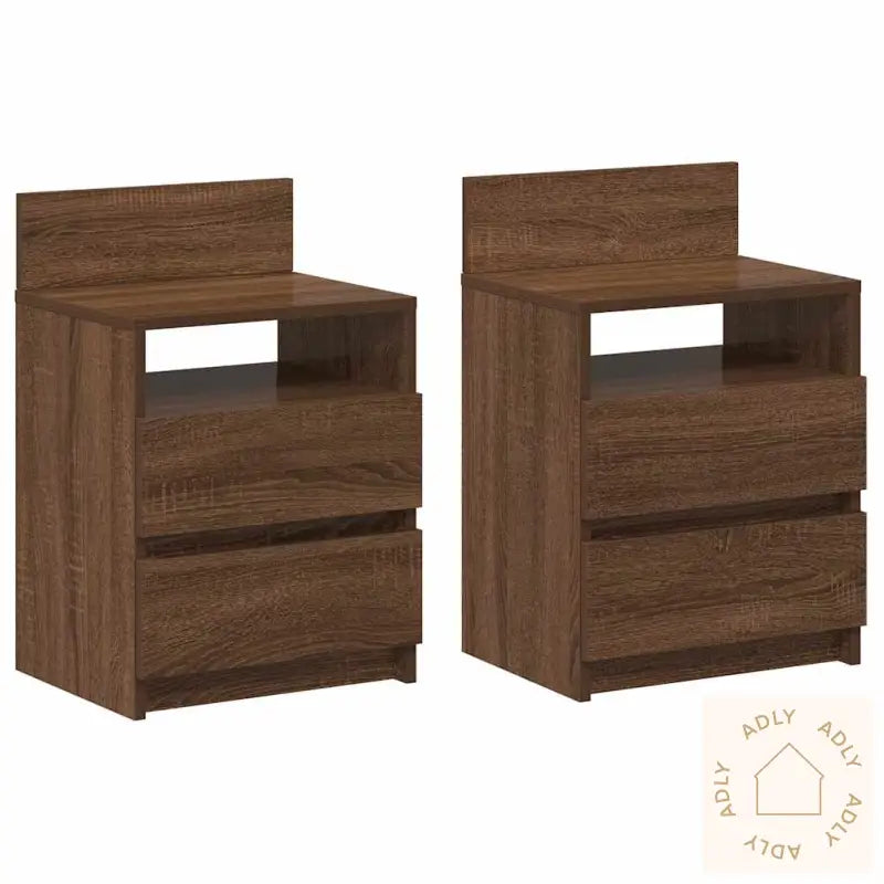 Nattbord i brun eik med slitesterkt materiale og glatte overflaten