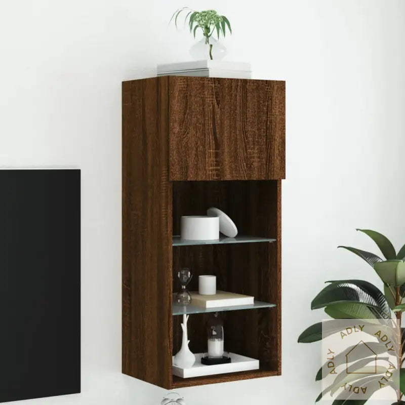 TV-bord i brun eik med stor lagringsplass til møbler til hjemmet