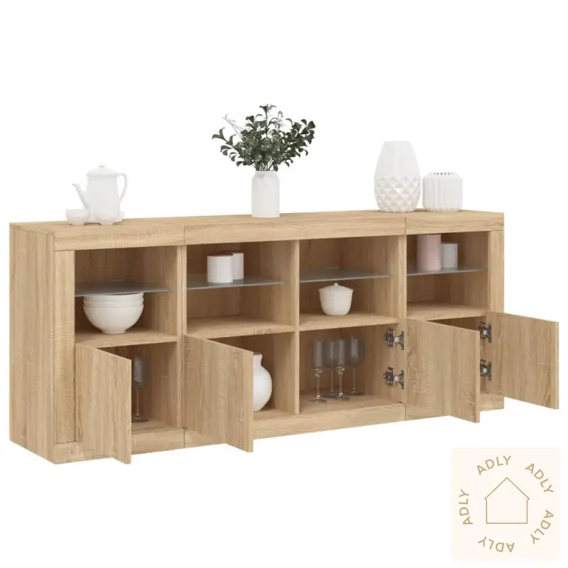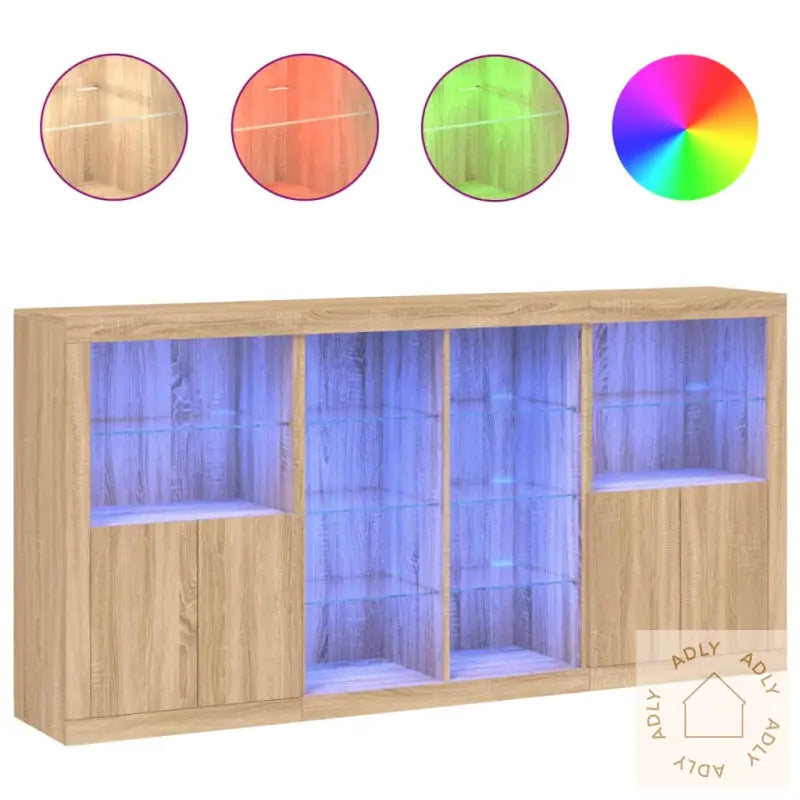 Moderne skjenk med RGB LED-lys i sonoma eik