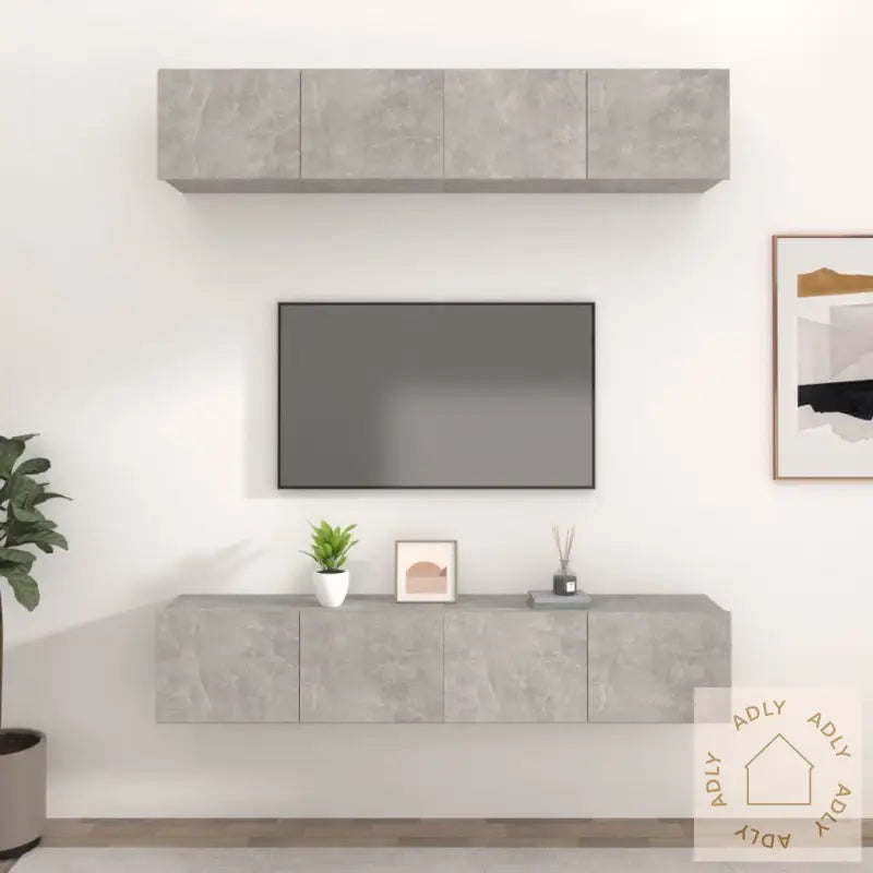 Tv-Benker 4 Stk Betonggrå 80X30X30 Konstruert TreTv-Benker 4 Stk Betonggrå 80X30X30 Konstruert Tre
