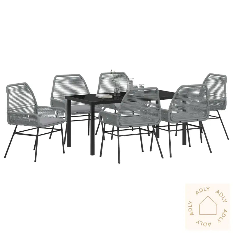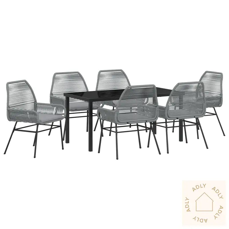 Hagemøbler i grå poly rattan med spisebord og stoler