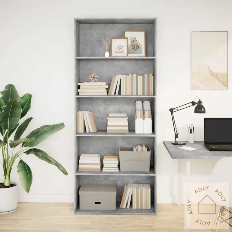 Klassisk bokhylle med betonggrå finish som kan plasseres horisontalt