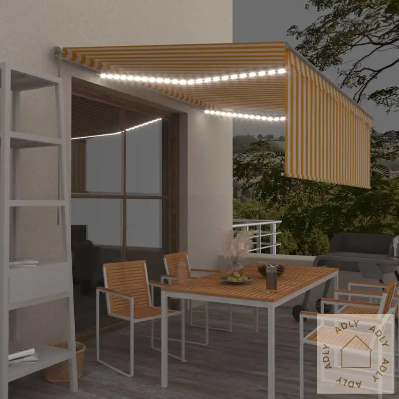 Uttrekkbar markise i polyester stoff gul og oransje til terrasse og balkong