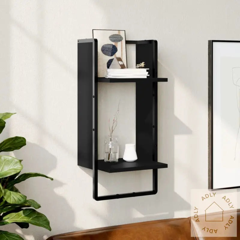 Moderne vegghylle med svart eikefinish passer perfekt til hjemmet