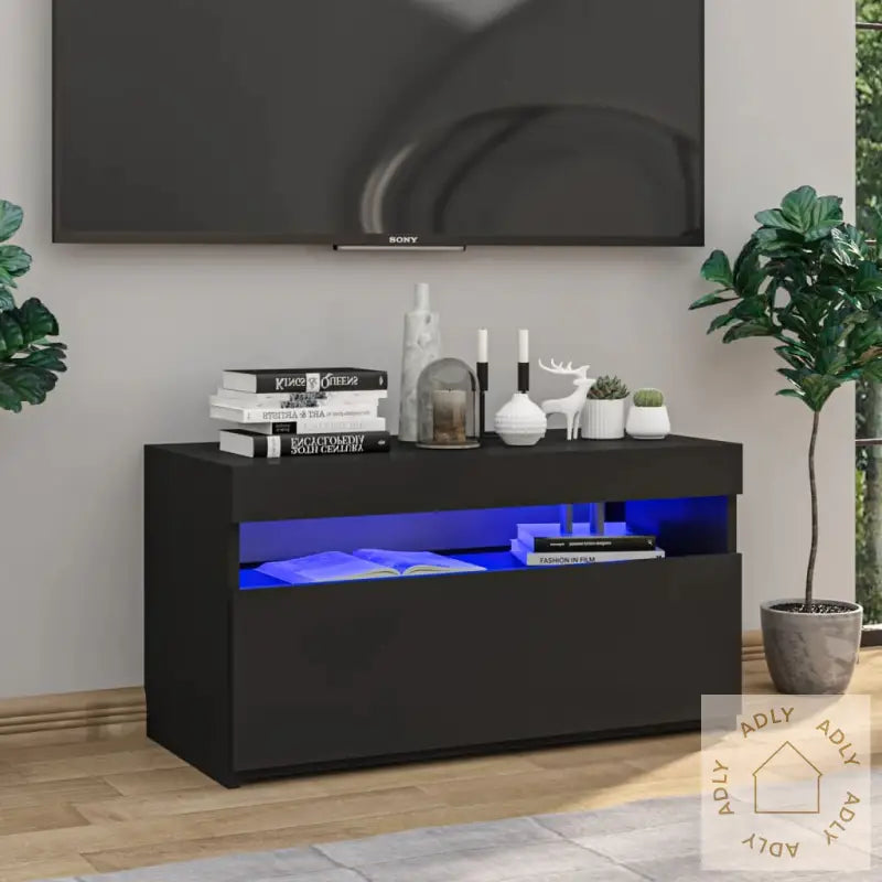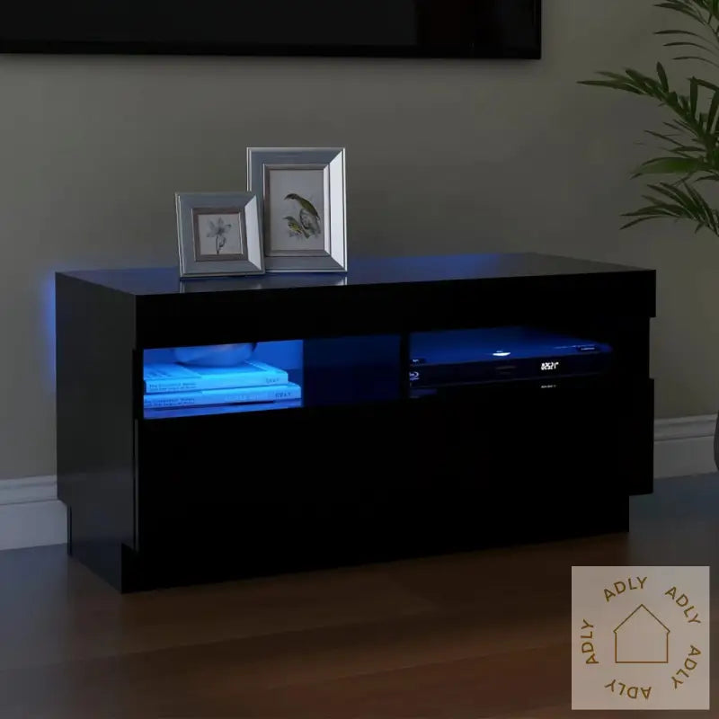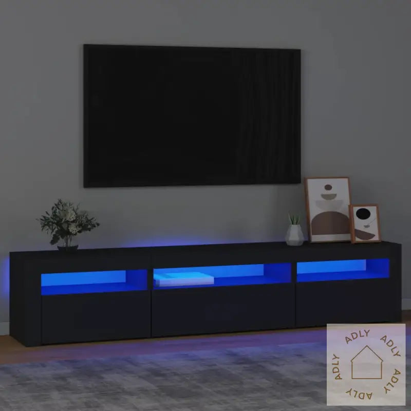 TV-bord med LED lys i svart eik