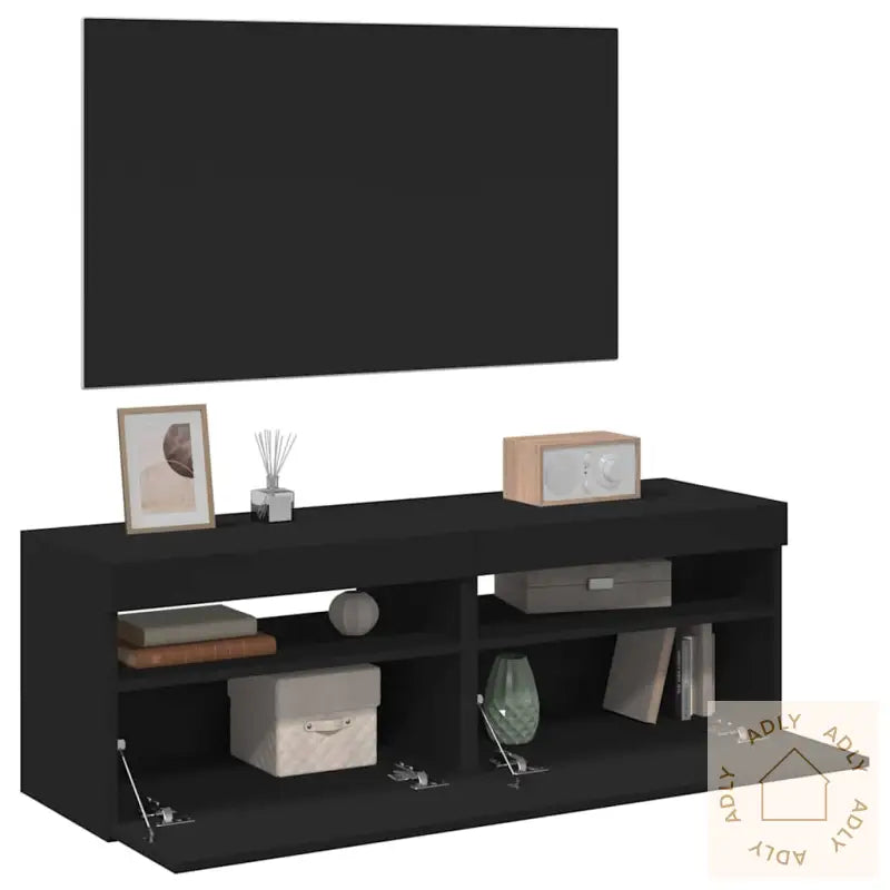 TV-bord med matt svart finish og stående skap uten å ofre stil