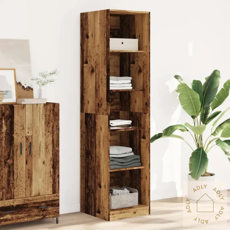 Praktisk garderobeskap med stående hyller i solid konstruert tre