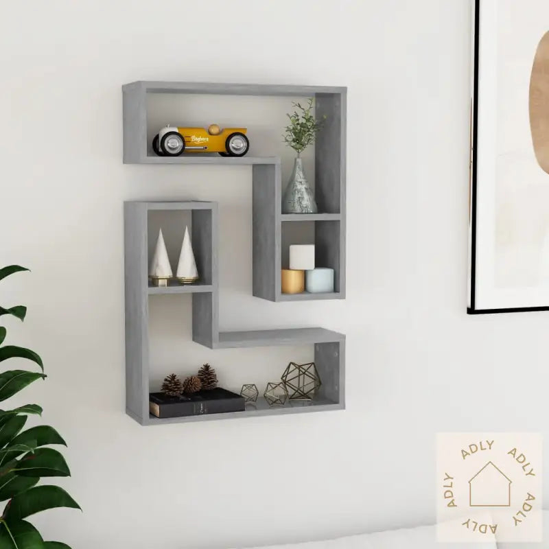 Kubeformede vegghyllen i høyglans grå med moderne preg