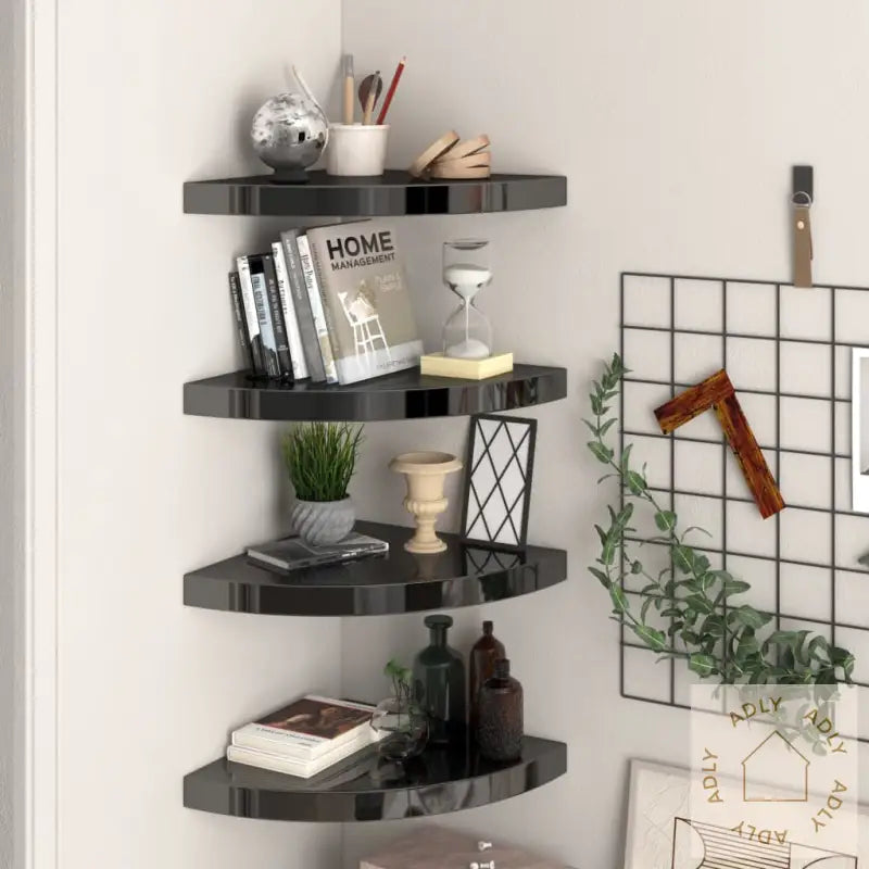 Hjørnehyller i svart eik passer perfekt til stue og soverom