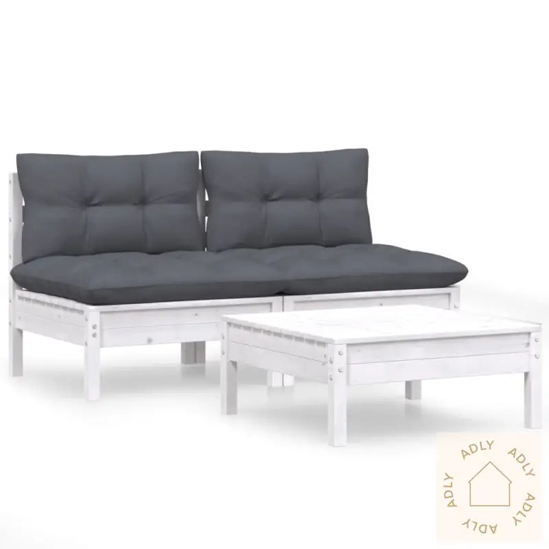 Utendørs hagemøbler i heltre furu for ekstra komfort og stilWhite heltre furu hagemøbler med grå puter for ekstra komfort utendørs