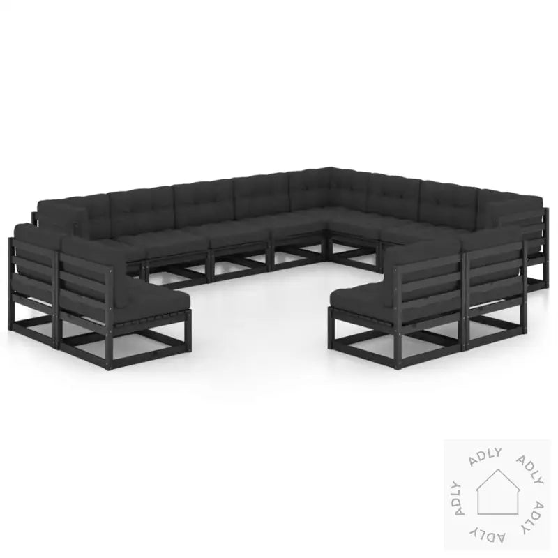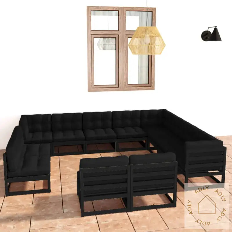 Hagesofagruppe Med Puter 14 Deler Svart Heltre FuruHagesofagruppe Med Puter 14 Deler Svart Heltre Furu