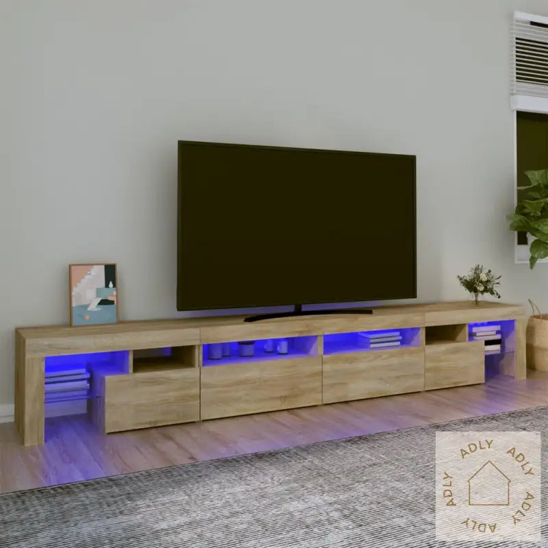 TV-benk med LED lys i sonoma eik