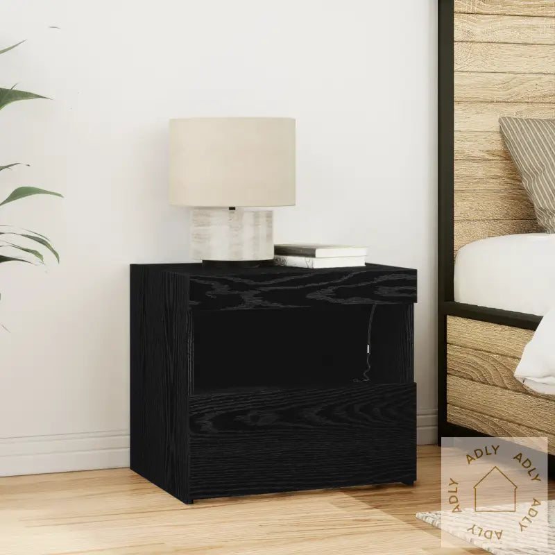 Nattbord i svart eik med moderne design og slitesterkt materiale