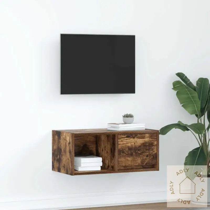 Vegghengt TV-bord sonoma eik med oppbevaring til møbler til hjemmet