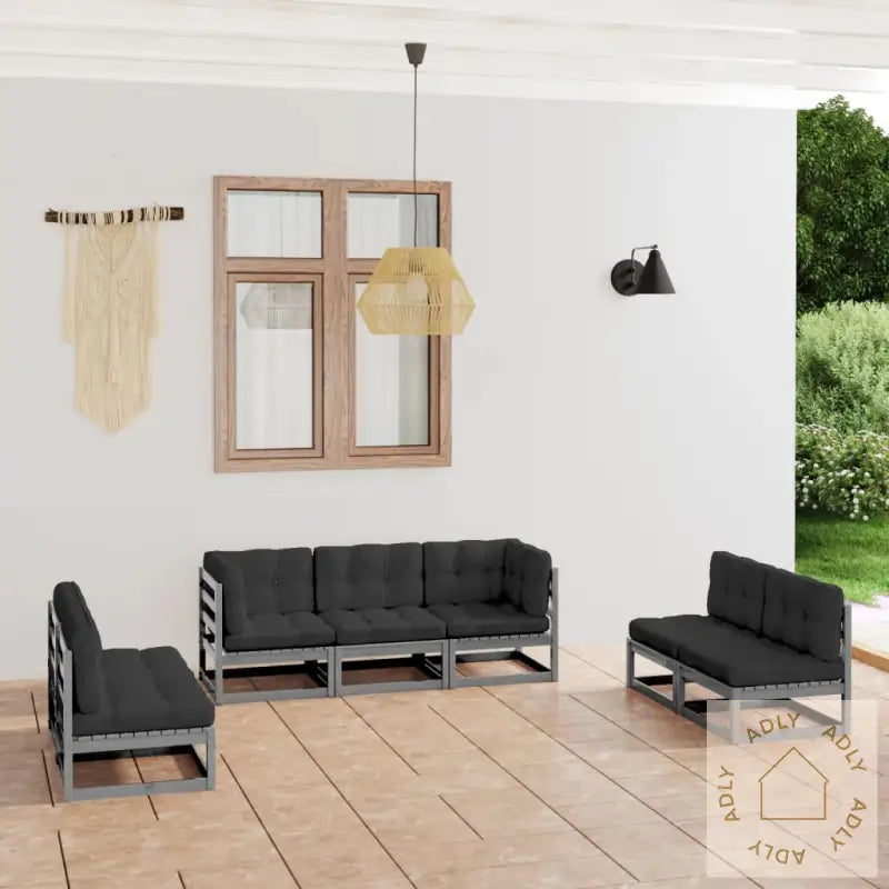 Hagegrupper i heltre furu for avslapping ute og komfortable puter