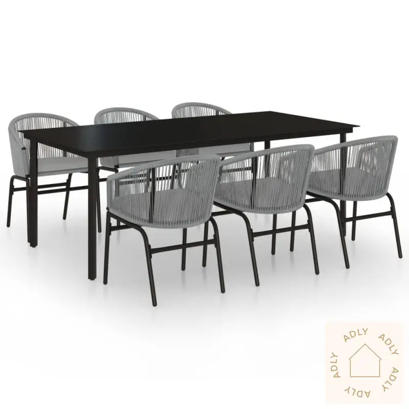 Hagespisegruppe med herdet glass og grå pulverlakkert stål