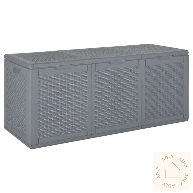 Putekasse med innebygde håndtak og rottinglignende tekstur til hagemøbler