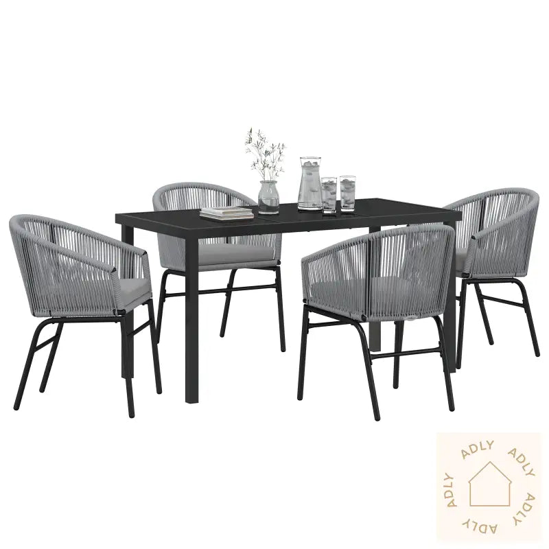 5-Delt Hage Spisebord Med Puter Svart Polyrotting5-Delt Hage Spisebord Med Puter Svart Polyrotting
