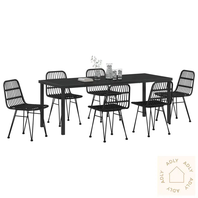 Poly rattan hagemøbler 7-delt sett med bord og seks stoler